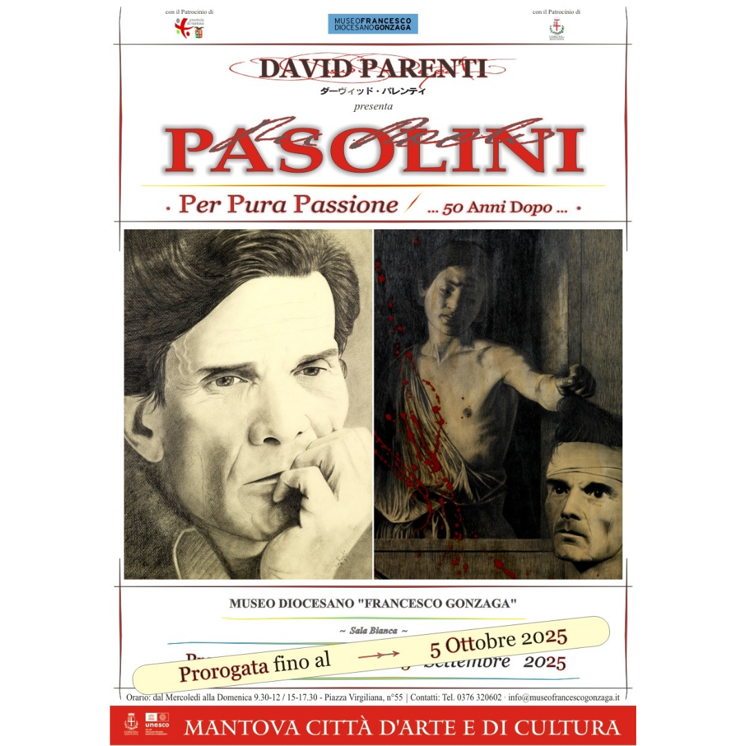 Giovedì 4 Settembre, alle ore 17, il Museo Diocesano “Francesco Gonzaga” di Mantova, con il Patrocinio del Comune e della Provincia inaugurerà una mostra di opere pittoriche e grafiche di David Parenti dedicate al mondo di Pier Paolo Pasolini in occasione del Cinquantesimo anniversario dalla tragica scomparsa.