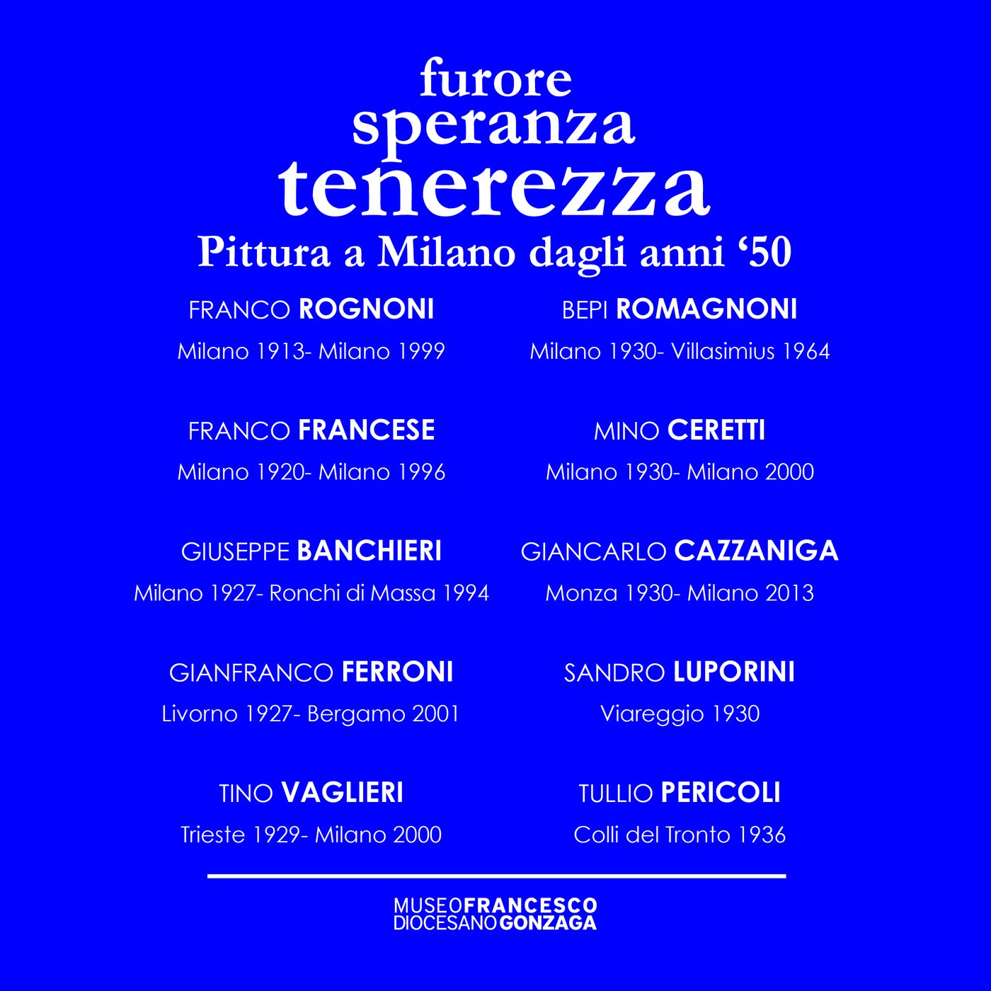 La mostra “furore, speranza, tenerezza- pittura a Milano dagli anni ‘50” inaugura venerdì 5 dicembre 2025 alle ore 17 nella Sala Colonne del Museo Diocesano di Mantova (Piazza Virgiliana 55). Resterà aperta con ingresso libero fino al 4 gennaio 2026 con orari venerdì, sabato e domenica 9,30-12,30 e 15,30-18,30 o su prenotazione (info: 328 5727 480). Organizzata da Alberto Bernardelli, riguarda una riflessione su un certo tipo di pittura milanese di inclinazione intimista che si sviluppa a partire dal dopoguerra. Va alla ricerca dei moti più profondi dell’essere umano e si colloca in uno spazio critico e autonomo. Non aderisce totalmente alla spinta verso l’astrazione e si distacca dal realismo a sfondo politico-sociale. Nella mostra possiamo godere della presenza di un cospicuo numero di opere (dipinti e disegni) di Franco Rognoni (1913-1999). Pittura di sentimento condotta con un segno e con una profondità di tono del tutto inconfondibile. Ci sarà anche un nucleo di opere ascrivibile al fenomeno del cosiddetto “realismo esistenziale”. Pittura di interni, di luoghi dell’anima dove il pittore trasferisce le sue pulsioni emotive più autentiche. Franco Francese (1920-1996), Giuseppe Banchieri (1927-1994), Gianfranco Ferroni (1927-2001), Tino Vaglieri (1929-2000), Bepi Romagnoni (1930-1964), Mino Ceretti (1930-2000). Giancarlo Cazzaniga (1930-2013). Chiudono la rassegna, composta da circa sessanta opere, due artisti ancora attivi nel panorama italiano: Sandro Luporini (1930) molto noto anche per l’intensa attività di paroliere delle canzoni di Giorgio Gaber e Tullio Pericoli (1936) che tutti ricordiamo per gli innumerevoli interventi grafici su quotidiani e riviste, da sempre pittore.